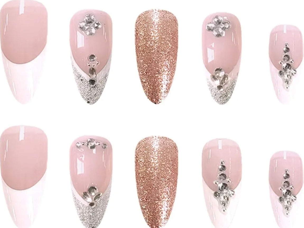 Elegant Glitter French Rhinestone Press-On Nails Fake Artificial Nails 24 Pcs – Free Shipping